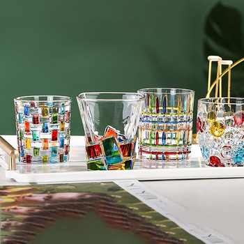 Partiler için ucuz ev su cam ile renkli viski şarap bardağı tasarım