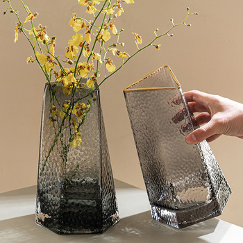 El yapımı Modern basit zarif cam vazo ucuz masa dekorasyon düğün ev dekor için özel Logo ile